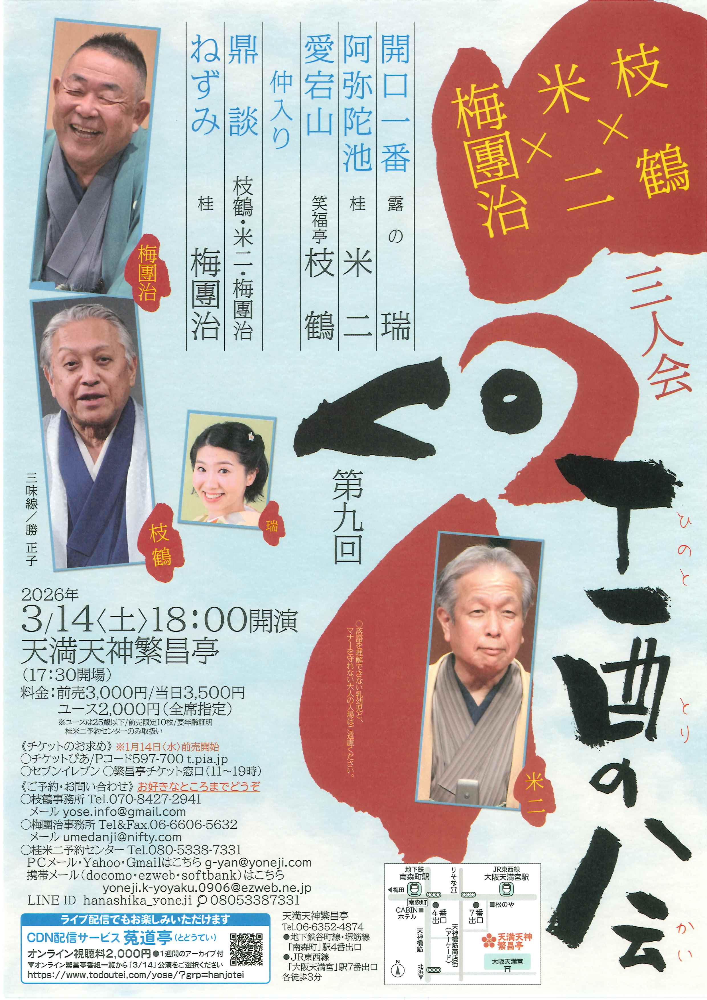 出演者 :露の瑞/桂米二「阿弥陀池」/笑福亭枝鶴「愛宕山」~仲入~【鼎談】笑福亭枝鶴・桂米二・桂梅団治/桂梅団治「ねずみ」